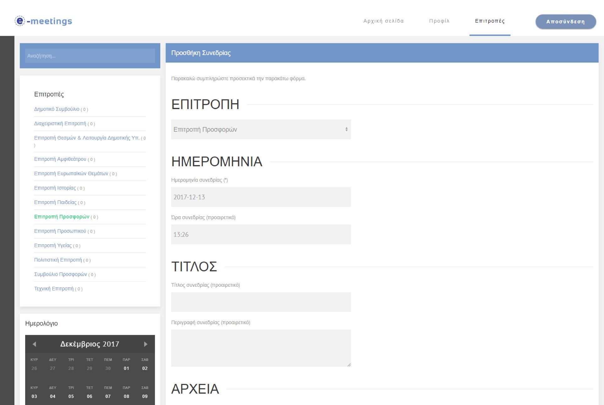 Το e-meetings υποστηρίζει πλήρως τη διαδικασία αποπεράτωσης των συνεδριάσεων του Δημοτικού Συμβουλίου. Στην ηλεκτρονική πλατφόρμα e-meetings, η έμφαση δίδεται στην ευχρηστία και την αποδοτικότητα του συστήματος, καθώς στόχος μας είναι η μετάβαση από τα χειρόγραφα αρχεία στην ψηφιακή εποχή, με τις πιο απλοποιημένες διαδικασίες.